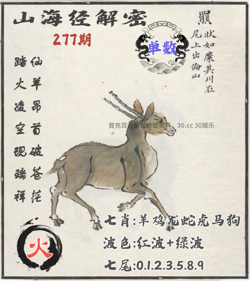 281期:🎼绝杀二尾🎼【5.8尾】开:羊47准